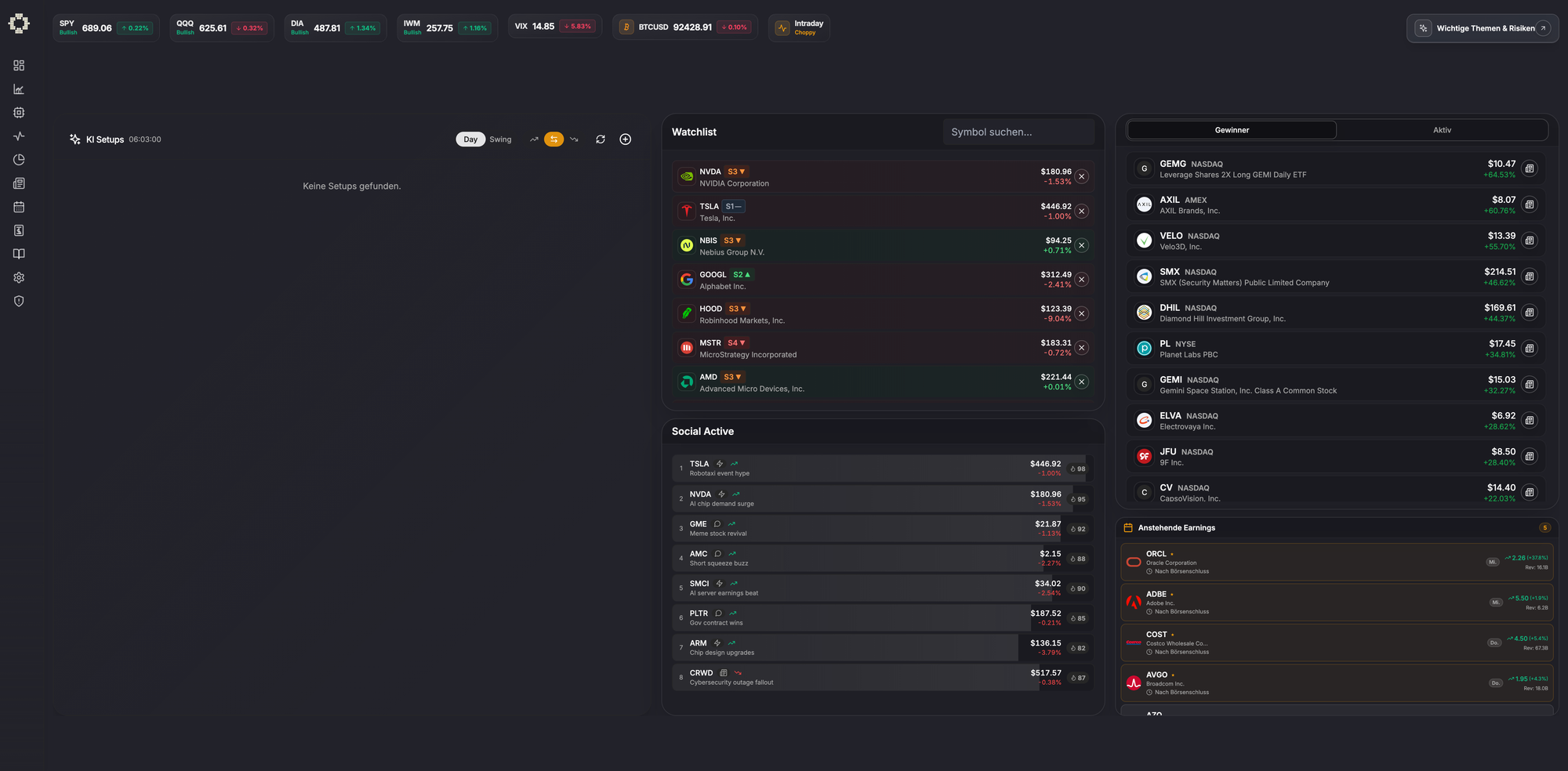 Der Tag beginnt mit Social Media und News, danach Pre-Market-Mover, anschließend TradingView mit unzähligen Tabs. Watchlists werden gepflegt, Setups notiert, Ideen verworfen. Und trotzdem werden gute Chancen übersehen oder zu spät erkannt.