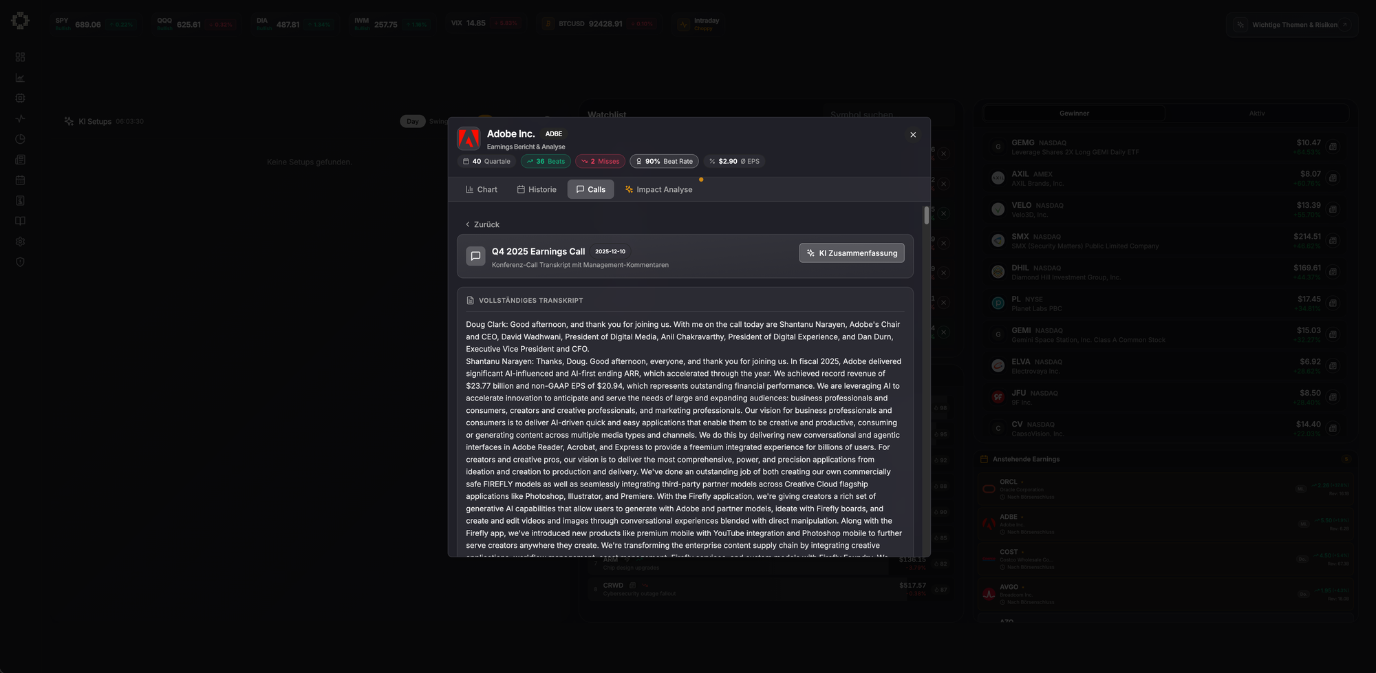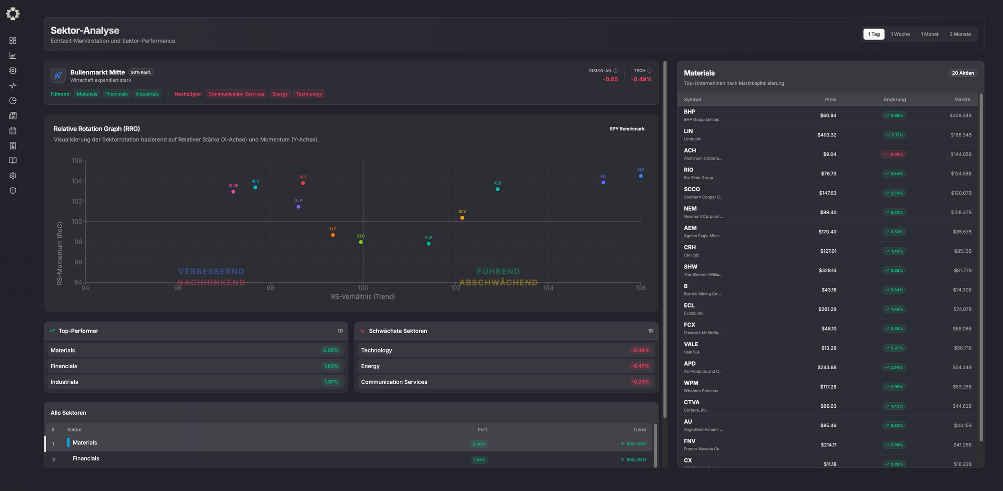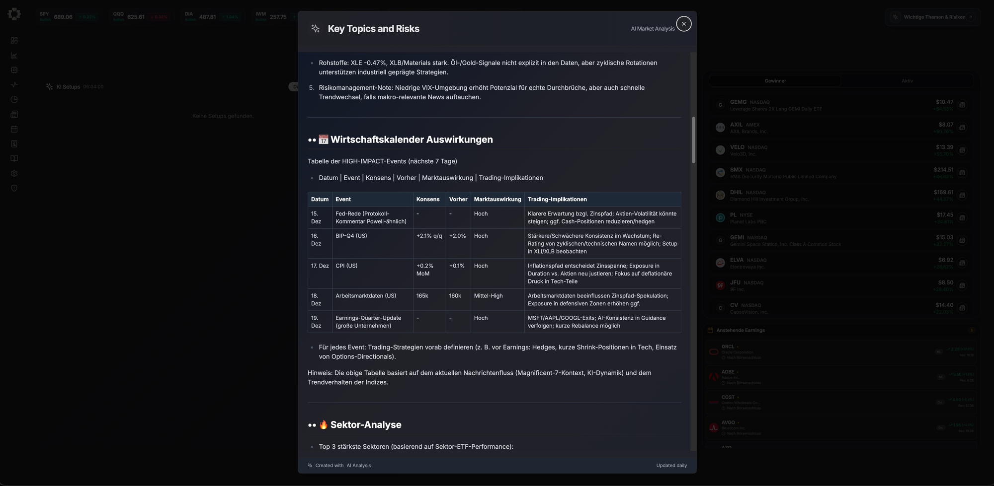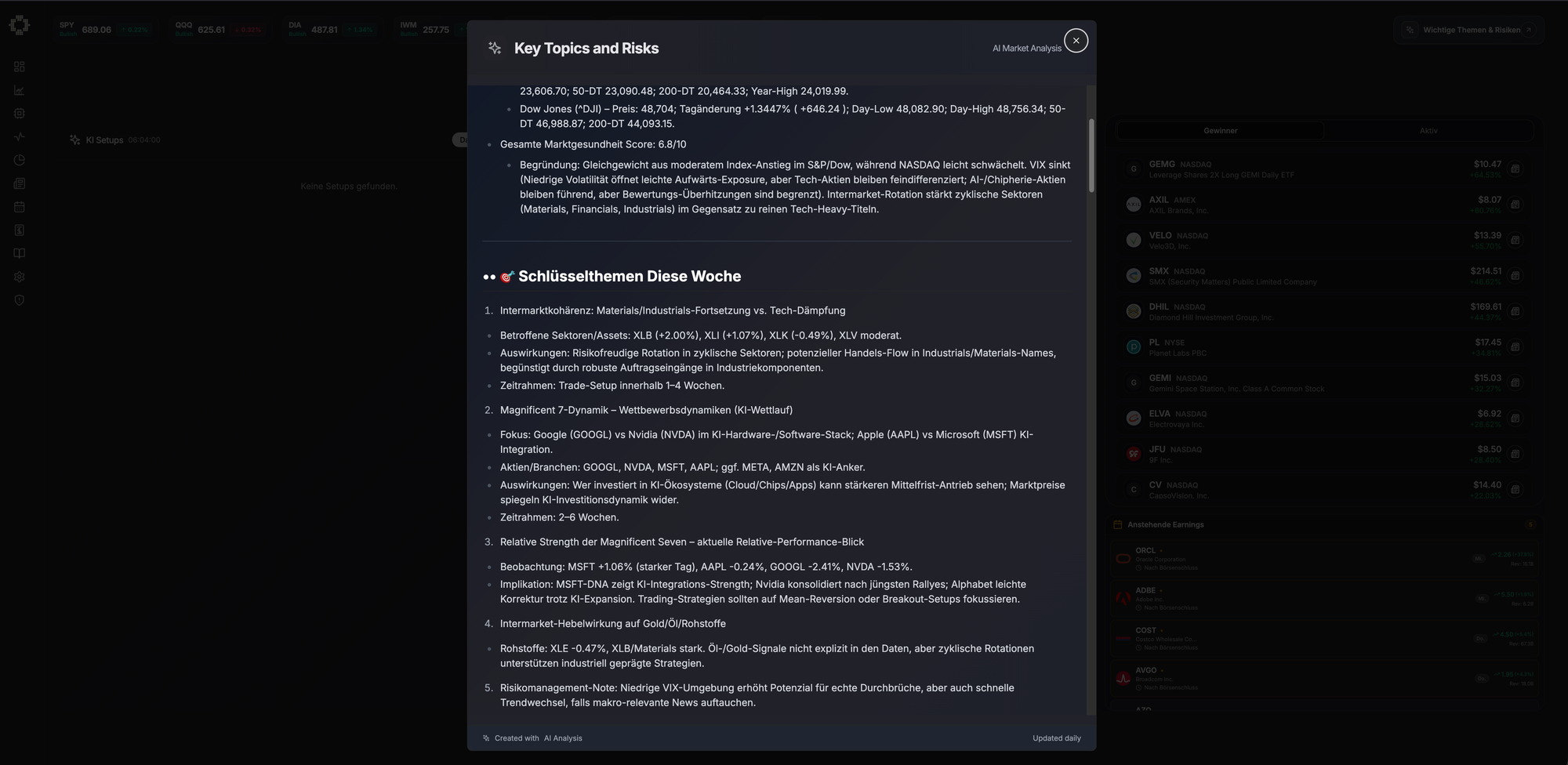 - KI-gestützte Analyse von Sentiment, News, Thesen und Marktphasen