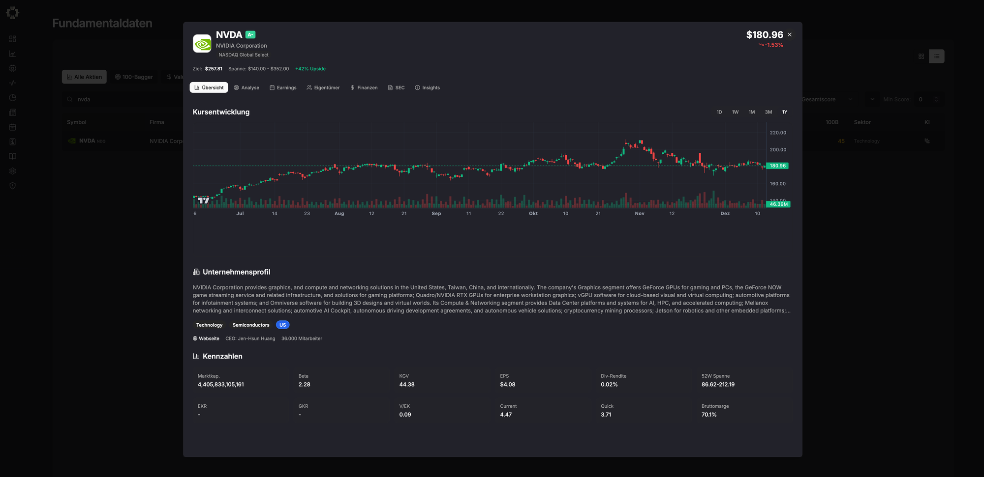 - eine Vielzahl an Kennzahlen und Unternehmensdaten