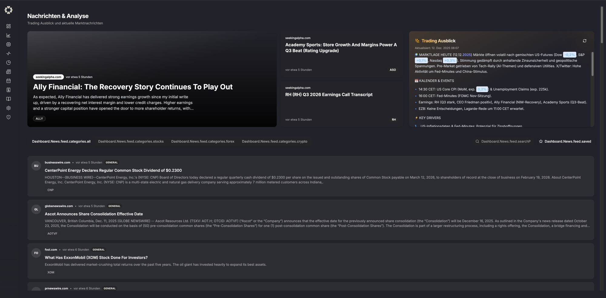 Das Dashboard ist der erste Ort, an dem du landest – und genau so ist es auch konzipiert: als zentrales Trading-Cockpit.